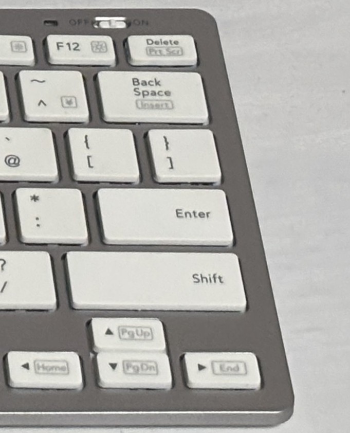 こういう薄いキーボードって薄い・軽いが故に打ってて振動で本体が動いたりして不快なやつが多い中で、この製品は軽すぎないからしっかり置いた位置に固定されて打てる。
