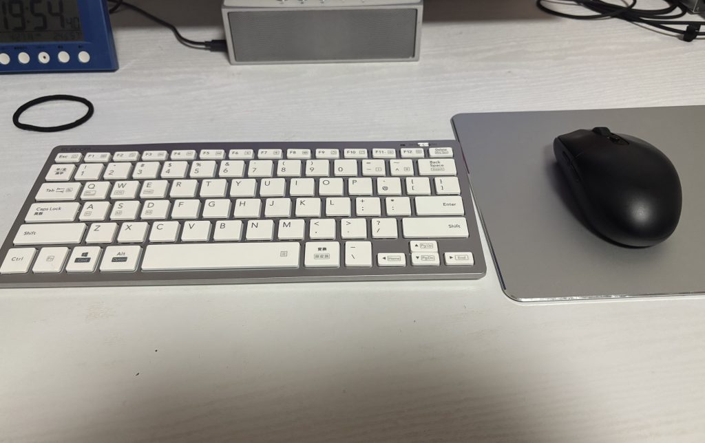 前まで左の黒のキーボード使ってたんやけど、やっぱり白いデスクだと存在感が出てしまう。